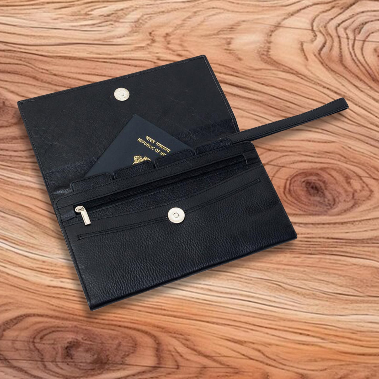 Description- This unisex travel pouch is made from a soft grained leather. Compact & slim this travel pouch can accommodate your passports & all other travel documents. Carry this pouch for your overseas trip and make it your safe travel companion!