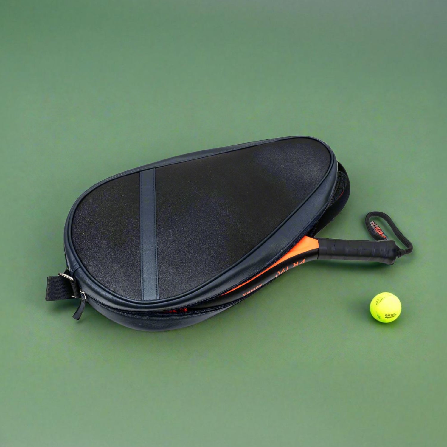 Product Description - This fashionable racket cover is made in a grained leather. The cover can accommodate 1 padel racket or 2 pickle rackets & 2 balls. The cover has a shoulder strap at the rear which makes it easier to carry on your shoulder. This leather cover protects your padel & pickle racket from scratches & dust. Leather also helps the racket from moisture & humidity which enhances the life of your racket . Carrying this cover gives a touch of sophistication & style. The cover is available in various colours & can be personalised with your name or initials.