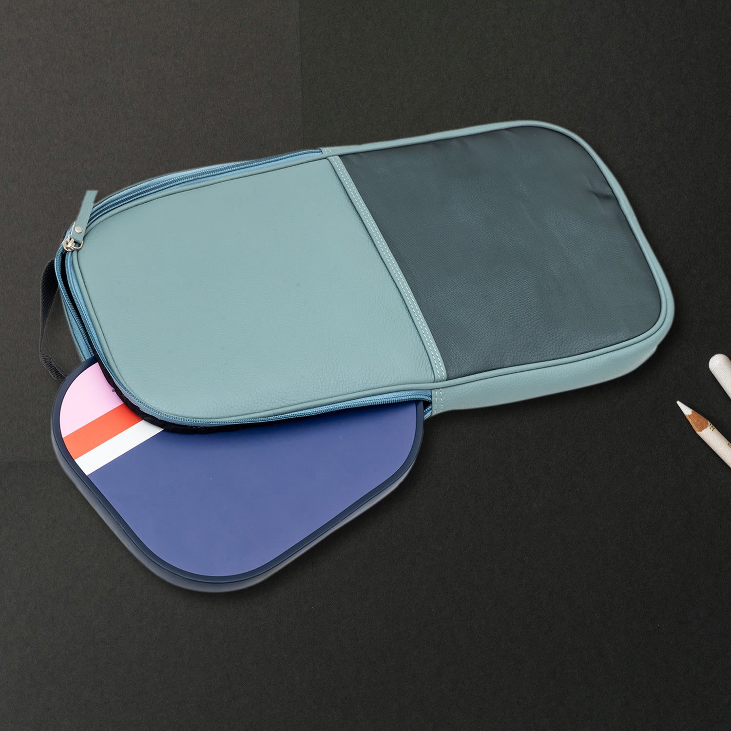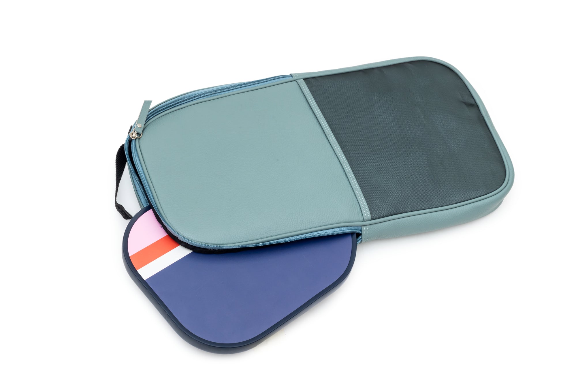 Product Description - This fashionable soft pickle racket bag is made in a grained leather. The bag can accommodate 2 rackets & 4 balls easily .The bag has a handle on top to carry it in your hand and a shoulder strap at the rear which makes it easier to carry on your shoulder. This leather bag protects your pickle racket from scratches & dust. Leather also helps the racket from moisture & humidity which enhances the life of your racket . Carrying this bag gives a touch of sophistication & style. The bag is available in various colours & can be personalized with your name or initials.